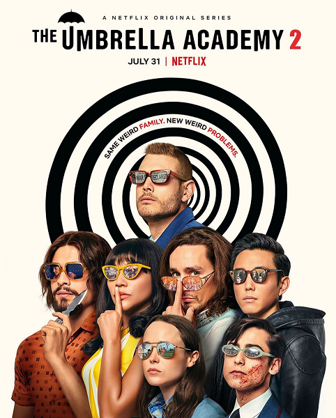 «Академия "Амбрелла"» — сериал о дисфункциональном семействе супергероев, разработанный Стивом Блэкманом («Видоизмененный углерод») для стримингового сервиса Netflix. «Академия "Амбрелла"» является адаптацией одноименной серии комиксов, созданной Джерардом Уэем, вокалистом группы My Chemical Romance. Первый сезон снят такими знатоками супергеройской тематики, как Питер Хор («Сорвиголова») и Стивен Серджик («Одаренные»). Сюжет сосредоточен на выпускниках Академии (Эллен Пейдж, Том Хоппер, Роберт Шиэн), однако, помимо человеческих персонажей, среди главных героев присутствует и высокоинтеллектуальный шимпанзе Доктор Пого. Стиль «Академии "Амбрелла"» виртуозно сочетает в себе легкий китч в духе Уэса Андерсона с неприкрытым безумством Тима Бертона, но не впадает в крайности, свойственные обоим режиссерам. Все это визуальное буйство приправлено отличным саундтреком, в том числе каверами на Simon and Garfunkel и The Turtles, записанными Уэем.